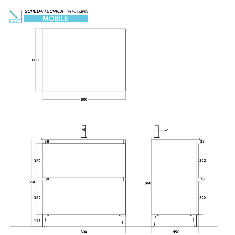 B02 - Mobili bagno / Da 61 a 90 cm / 900202