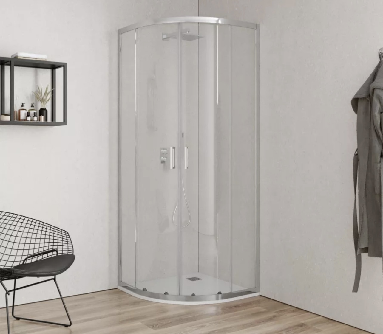 DAFNE02 BOX DOCCIA SEMICIRCOLARE CRISTALLO TRASPARENTE 6mm PROFILI CROMO 90x90cm h190 PZ 1 1