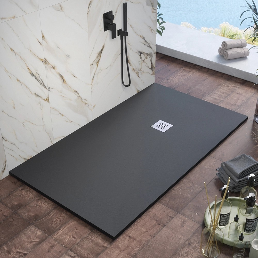 PIATTO DOCCIA RETTANGOLARE EFFETTO PIETRA ANTRACITE