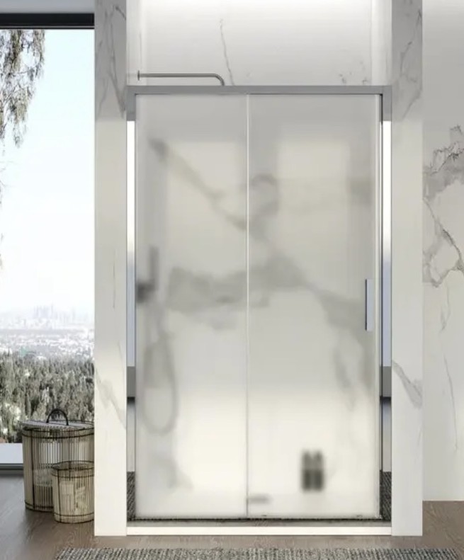 TETI23 PORTA SCORREVOLE CRISTALLO SATINATO 6mm PROFILI CROMO 120cm h190 PZ 1 1